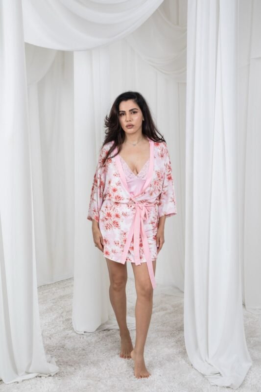 روب نوم نسائي قصير بنقشة الزهور 2 قطعة