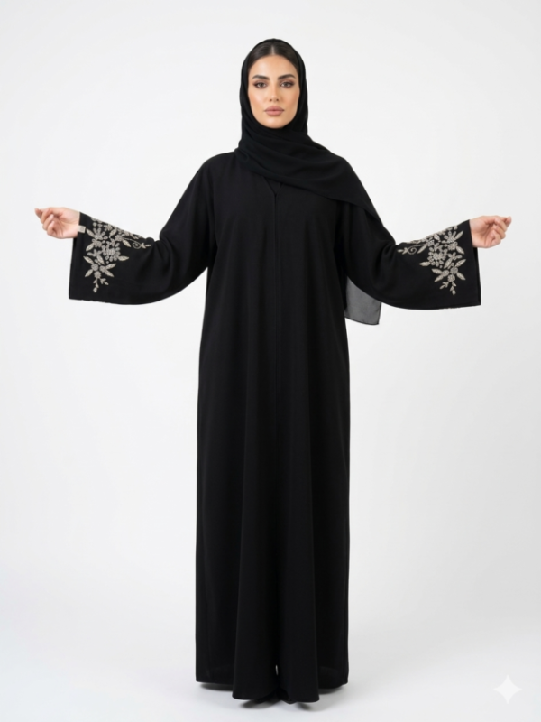 تتميز بتطريز يدوي متقن على الأكمام، مستوحى من تفاصيل أوراق الغاف، ليعكس لمسة فنية راقية تضيف فخامة وخصوصية لكل إطلالة.