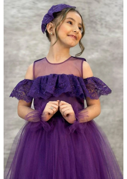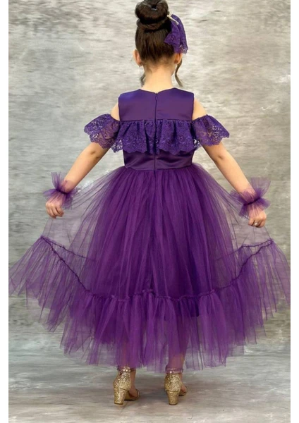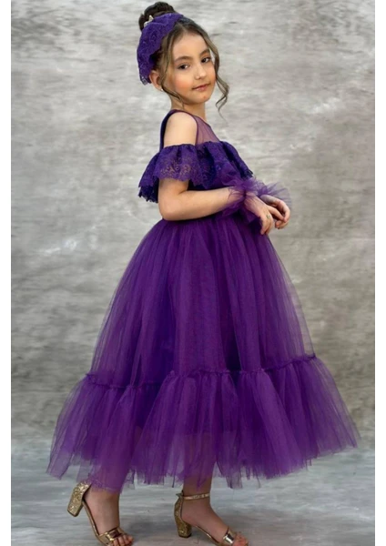 فستان سهرة بنفسجي مع مشبك شعر