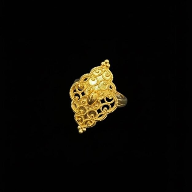 Elegant gold ring with an ornate Arabic-inspired design and intricate details, adding a touch of luxury and allure to your look, suitable for various occasions.