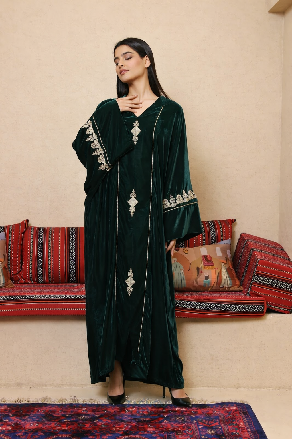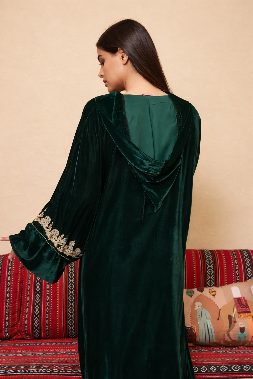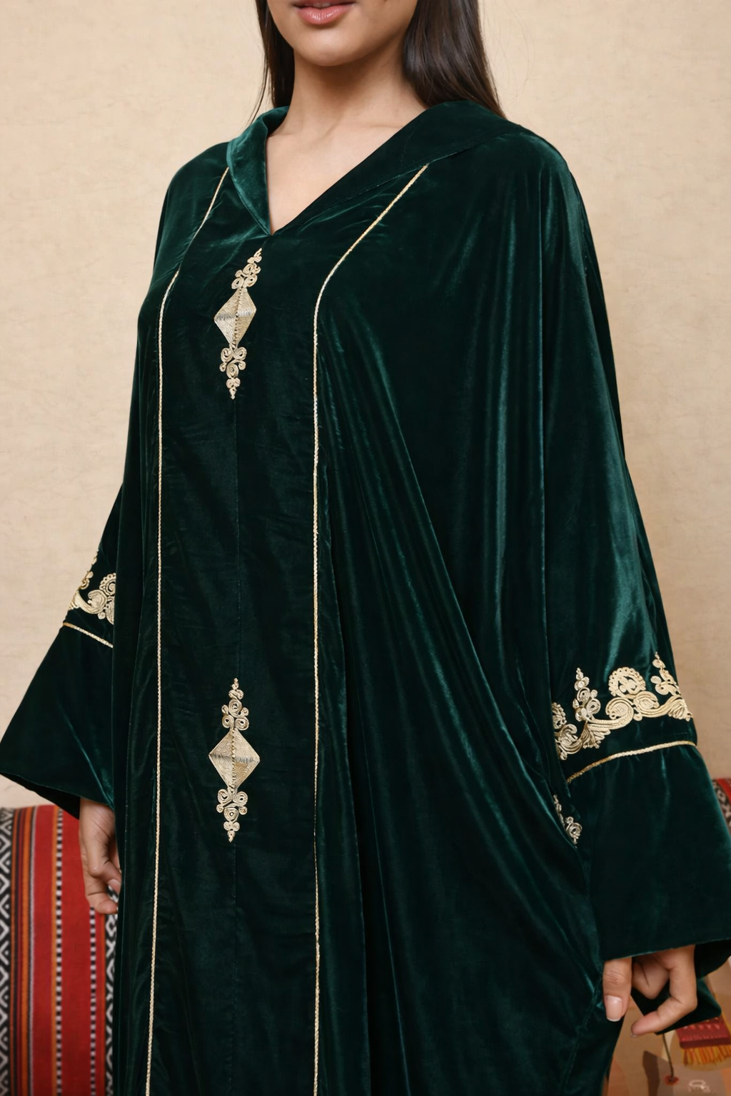 جلابية مغربية مخمل فاخرة بتطريز يدوي أنيق 136.13 $ يشمل ضريبة القيمة المضافة