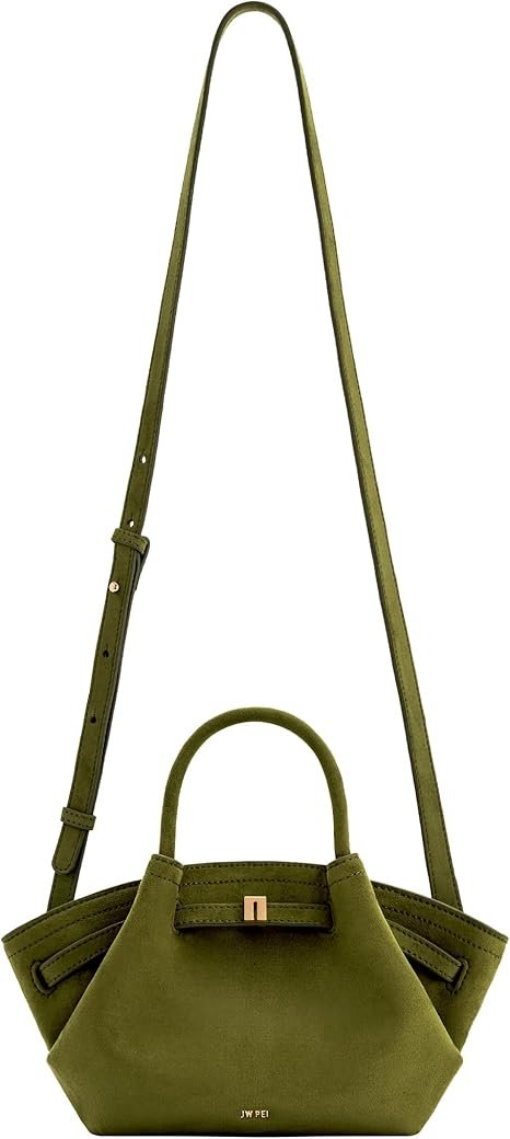 حقيبة شمواه صناعي باللون الزيتي الغامق بتصميم أنيق وعصري، مزودة بإكسسوارات ذهبية راقية. يمكن حملها باليد أو على الجسم بحزام قابل للتعديل، مع جيب داخلي عملي. حجمها مناسب لهاتف iPhone 15 Pro Max وجميع الهواتف الأصغر، مثالية للاستخدام اليومي.