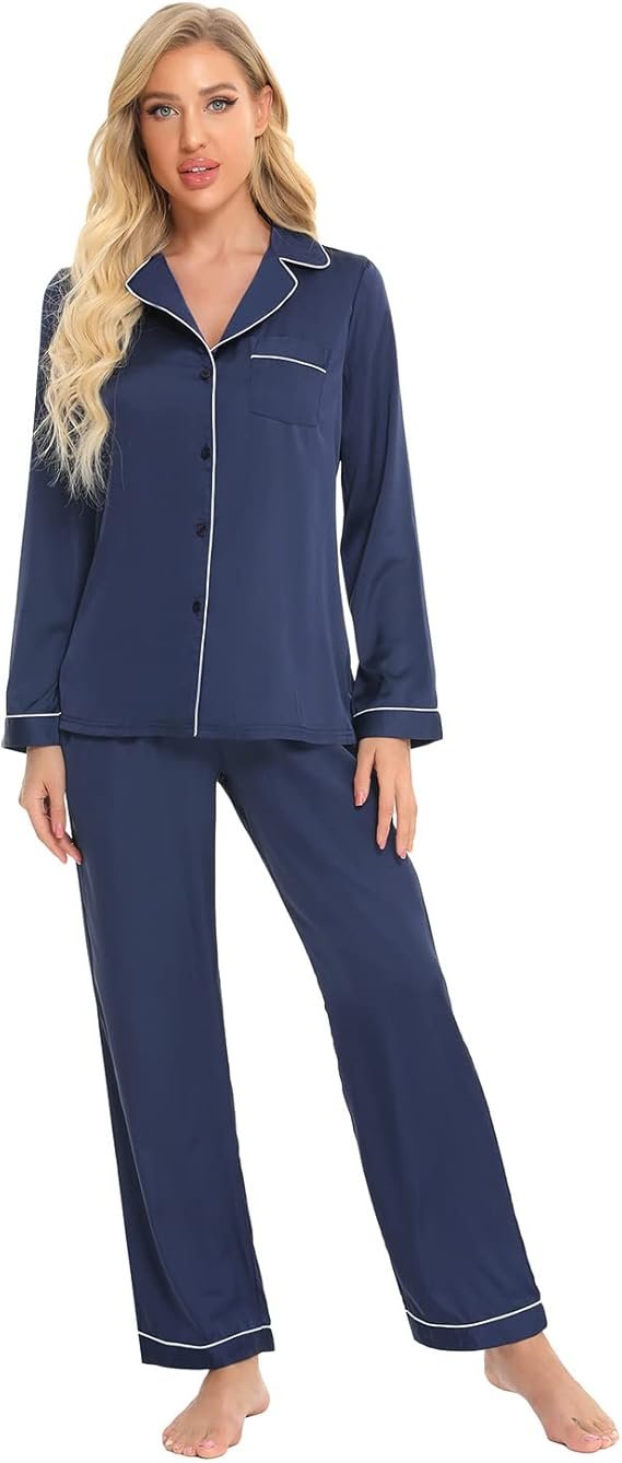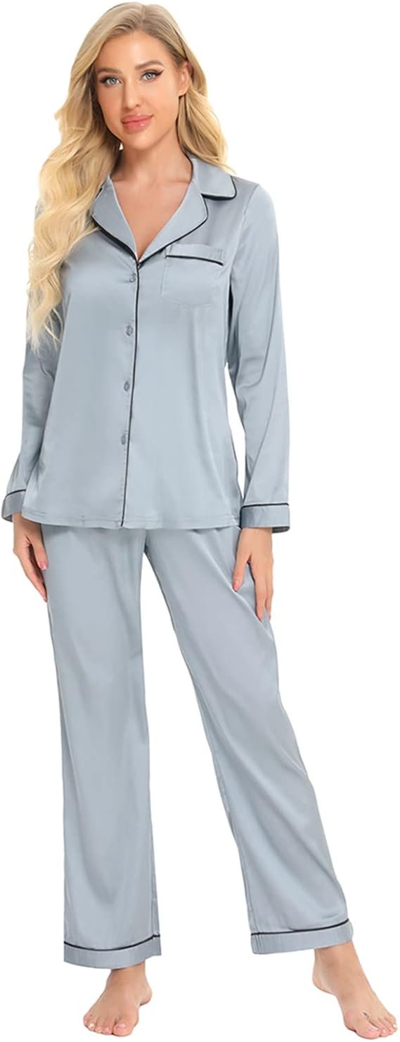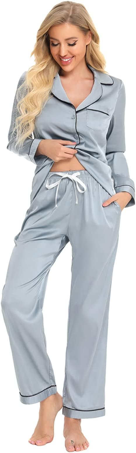 طقم بيجامة من الساتان الحريري للنساء: 97% بوليستر/ 3% ألياف لدنة. (أنعم للغاية).