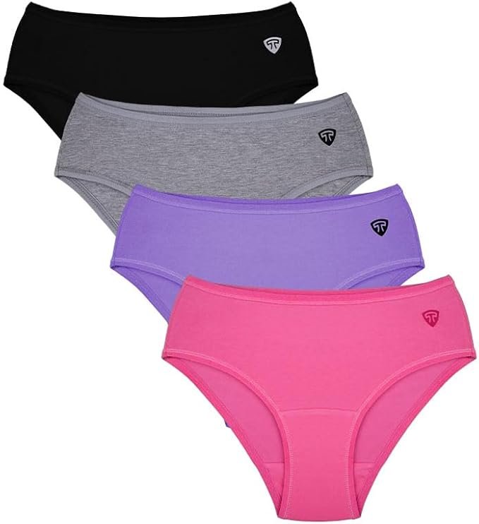 سراويل داخلية نسائية مضادة للحساسية من القطن الفاخر من توبيك، عبوة من 4 قطع، اسود ورمادي وبنفسجي وزهري، مقاس مريح، جيد التهوية