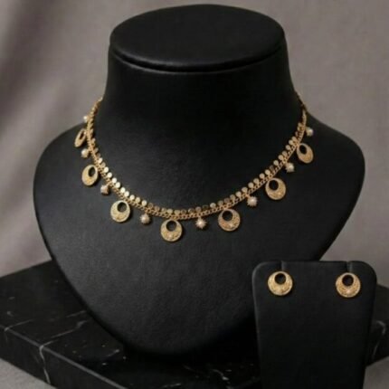 طقم إكسسوارات ذهبي بتفاصيل دائرية