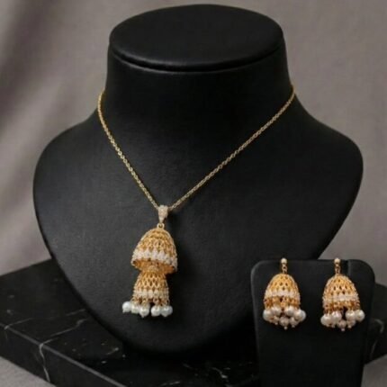طقم إكسسوارات ذهبي أنيق بقلادة متدلية