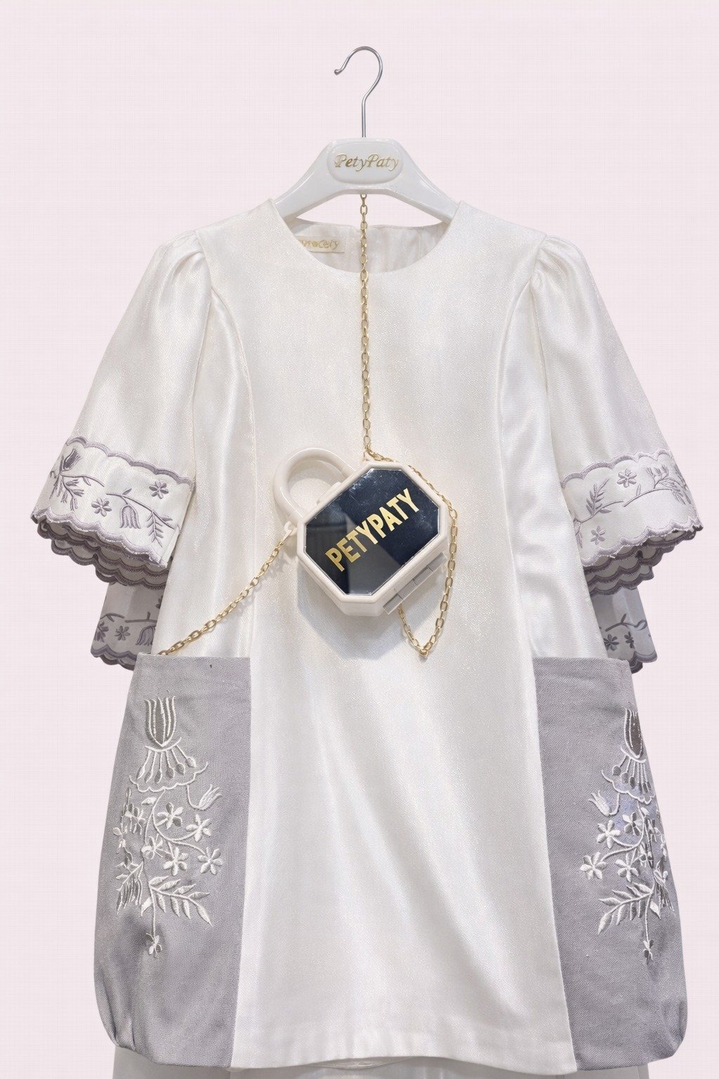 فستان عيد/يومي مصنوع من قماش عالي الجودة بلون الابيض والفضي