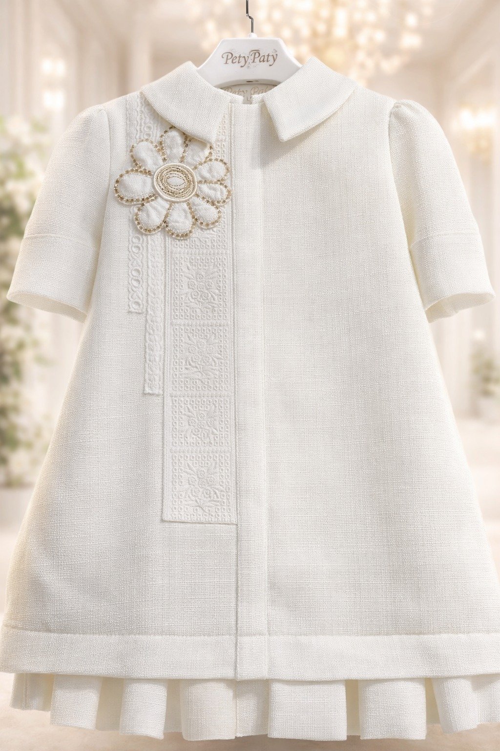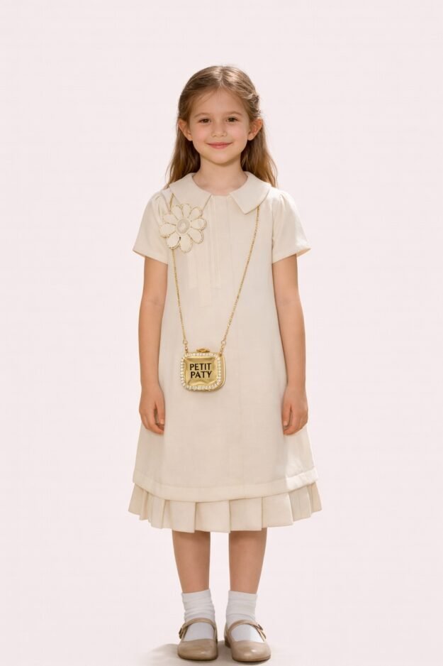 فستان عيد/يومي مصنوع من قماش عالي الجودة بلون البيج