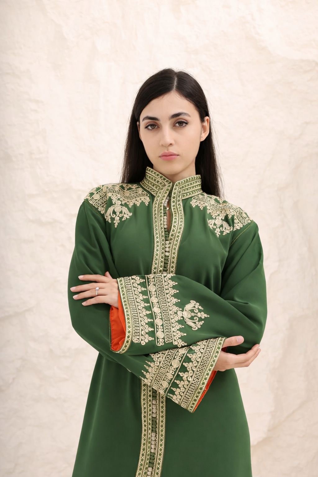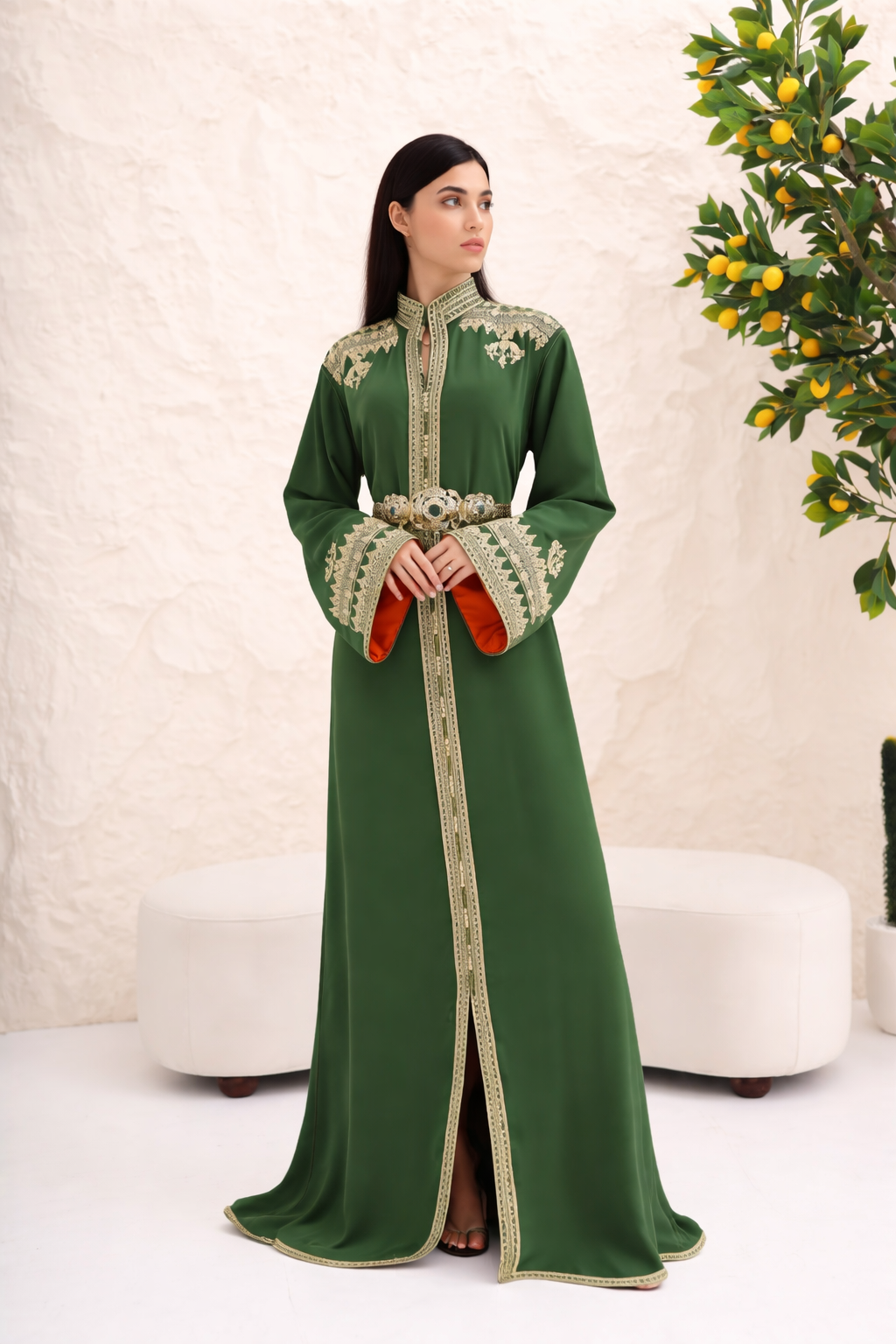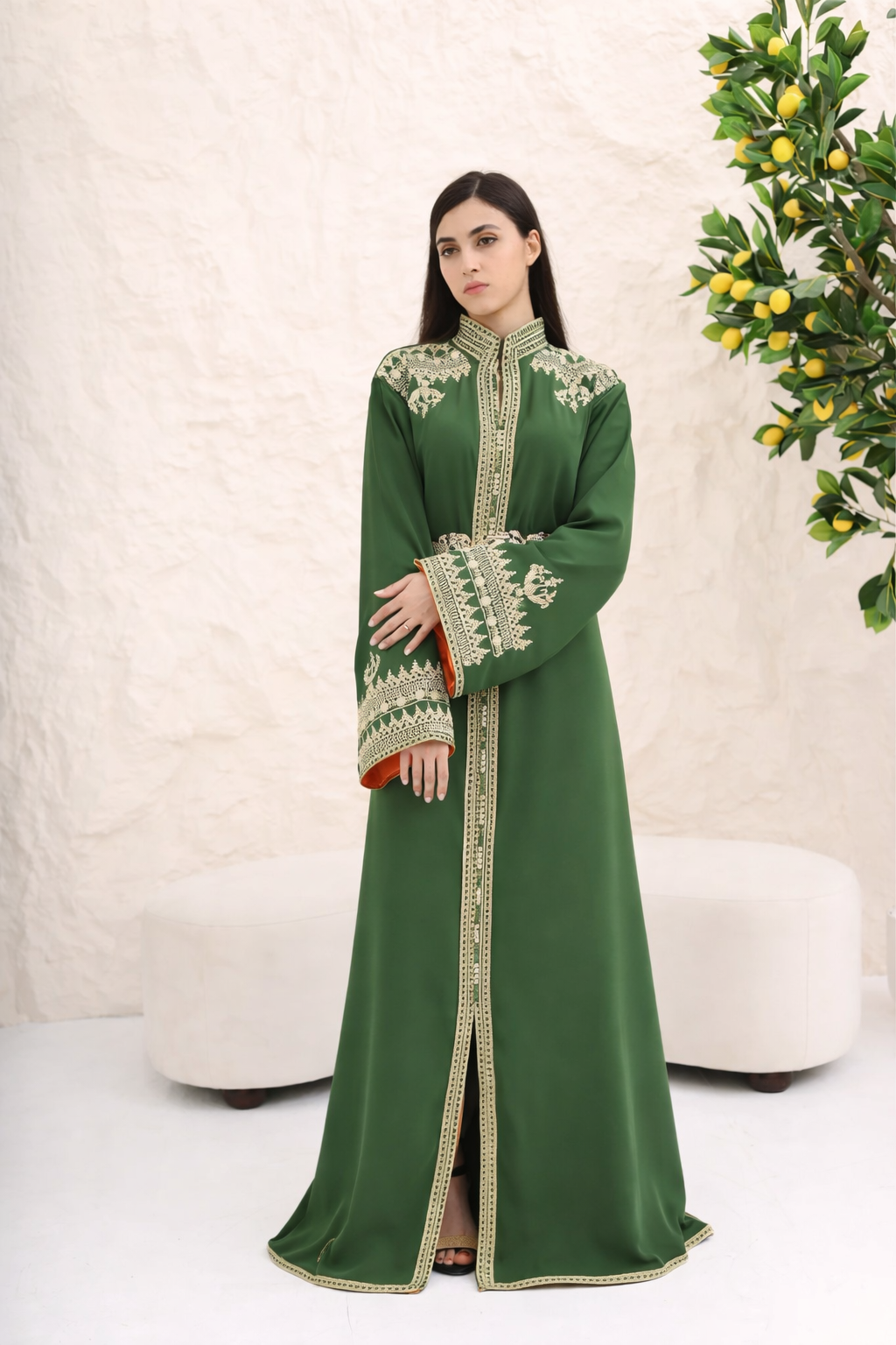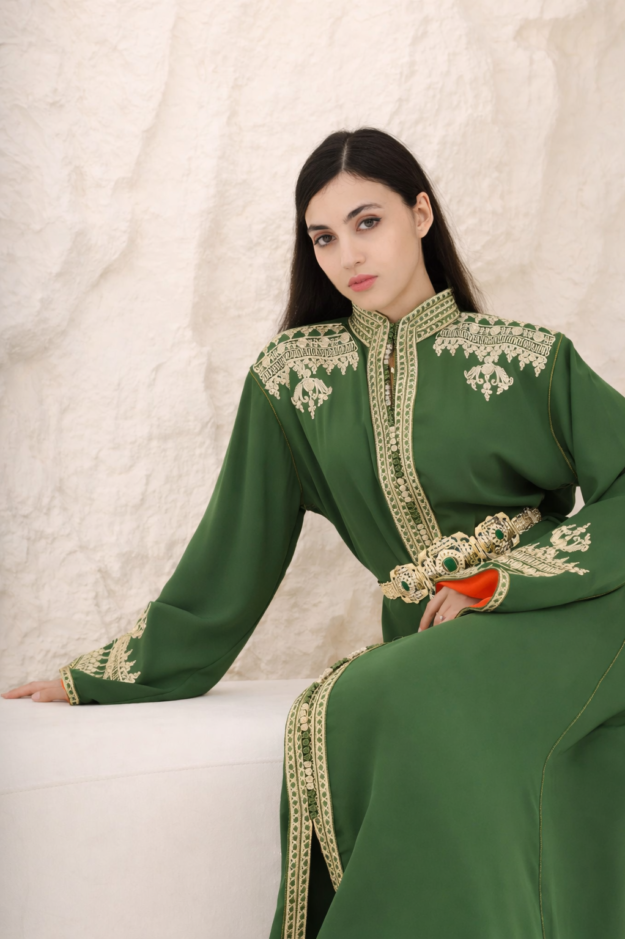 قفطان أخصر فاخر مطرز باللون الذهبي