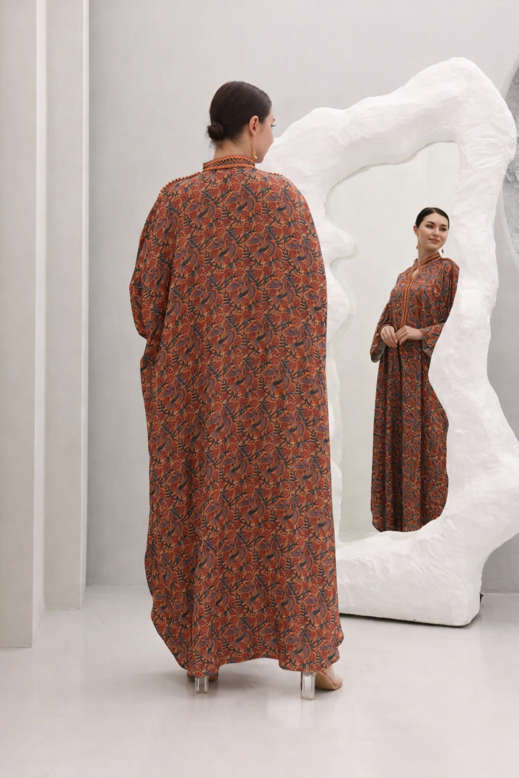 تأتي القصة الانسيابية لتمنحك حركة ناعمة وحضوراً مميزاً في كل خطوة، مما يجعله خياراً مثالياً للمناسبات والإطلالات الراقية. هذا القفطان يعبر عن الأناقة الهادئة والأنوثة المترفة بأسلوب عصري مستوحى من الذوق الرفيع.