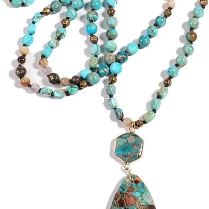 قلادة 35 بوصة من الحجر الطبيعي المطرز مصنوعة يدوياً