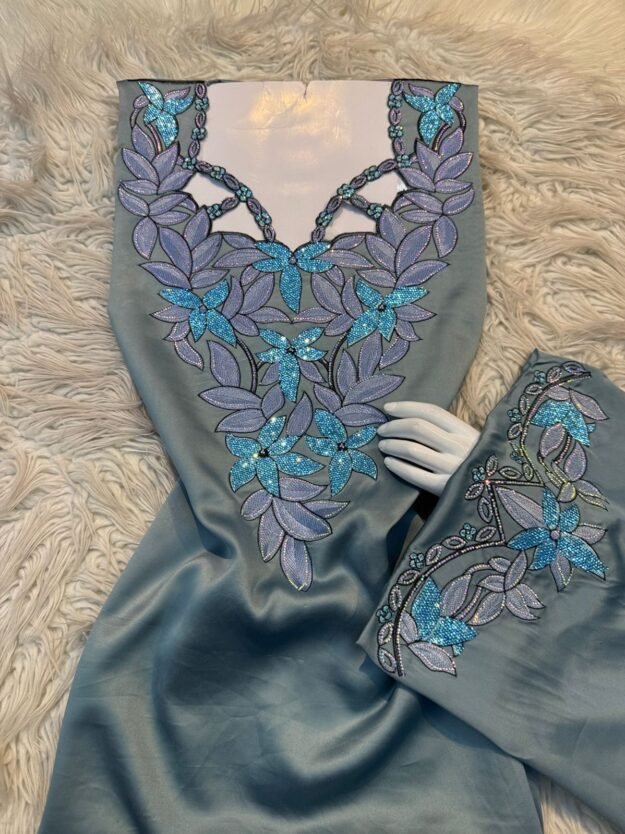 مخور فاخر حرير جاكرد طايح بتطريز وكريستال وفصوص سته