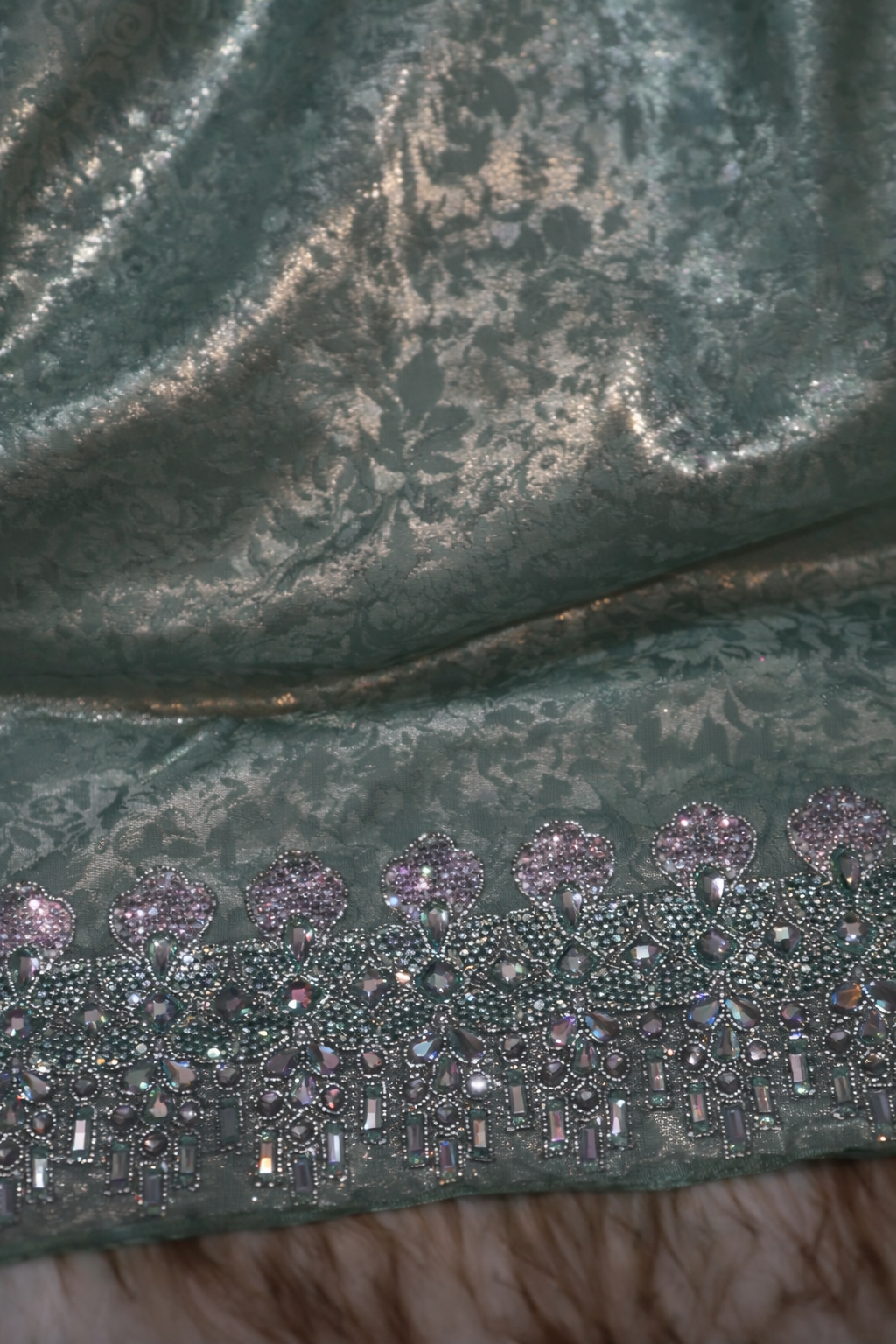 مخور فاخر حرير جاكرد طايح بتطريز وكريستال وفصوص سته