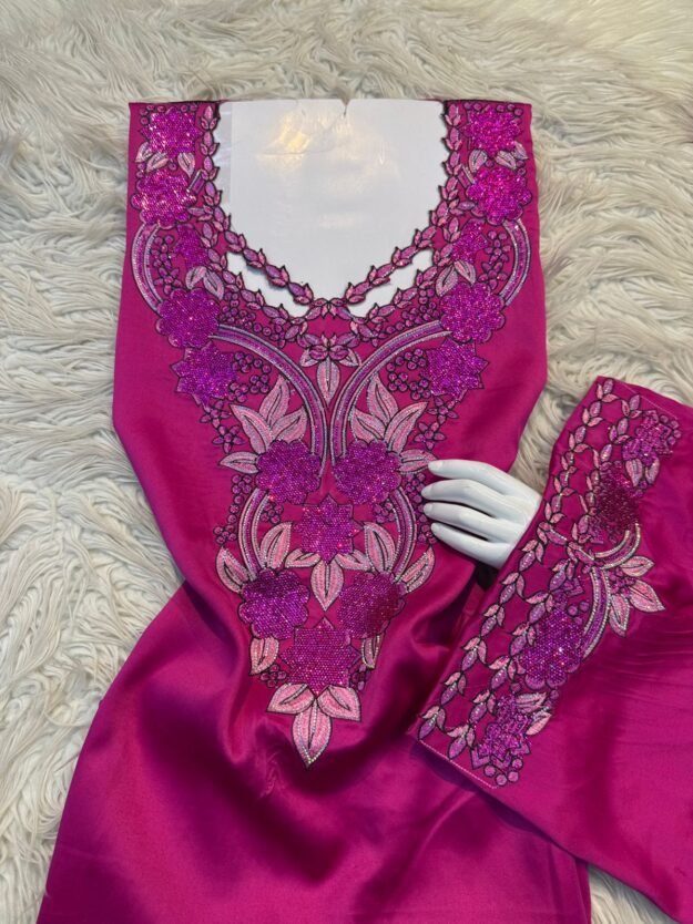 مخور فاخر حرير جاكرد طايح بتطريز وكريستال وفصوص سته